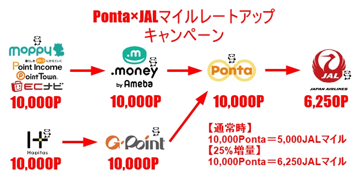 これであれば、ダイレクトにモッピーからJALマイルに交換するのがベストですね!!