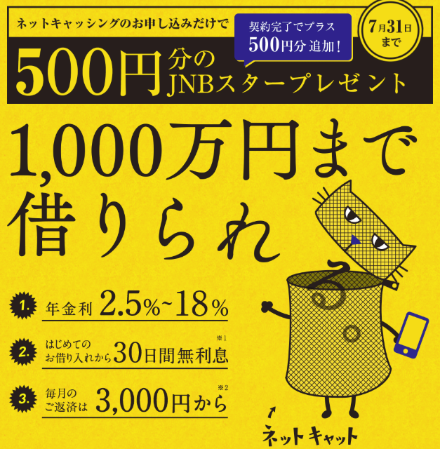 今なら500円分のJNBスターポイントが貰えます!!