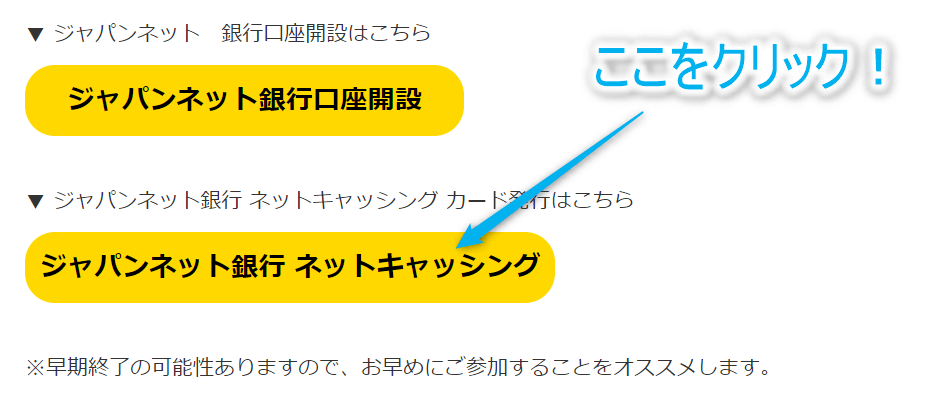 ここにある「ジャパンネット銀行口座開設」をクリックしましょう!!