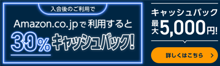 - Amazon利用で30%還元!!最大5,000円のキャッシュバック