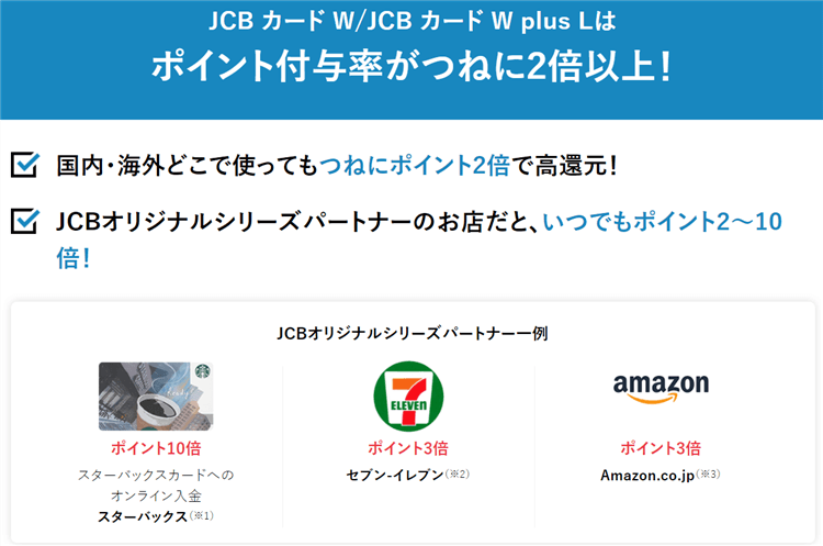 「JCB CARD W」は年会費無料でポイント還元もお得ですし、何よりもJCBブランドというのも安心感のあるクレジットカードになりますね!