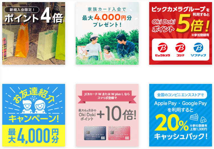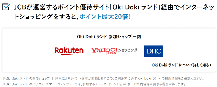 更にインターネットショッピングの「Oki Doki ランド」でのショッピングは最大20倍となるので効率よくポイントを貯めることが可能です。