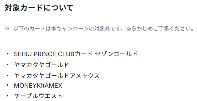 逆に上記以外のカードは今回のキャンペーンの対象となりますね!