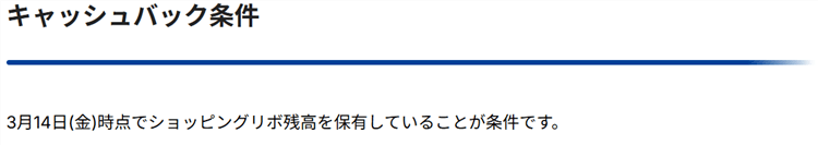 そしてキャッシュバック条件として3月14日(金)の時点でリボ残高があることが条件です。