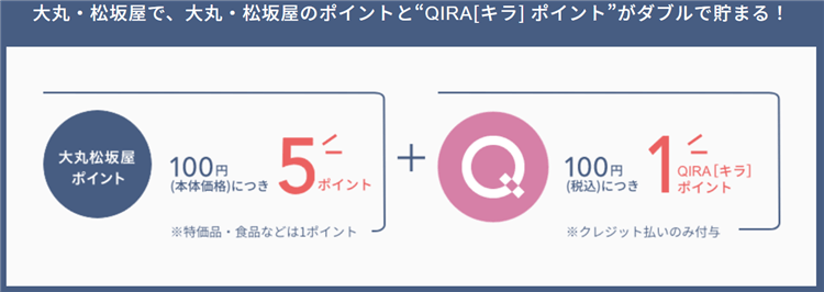 ここがすごい!大丸・松坂屋のボーナスポイントに加えて、QIRAサンクスポイントが貰える!!
