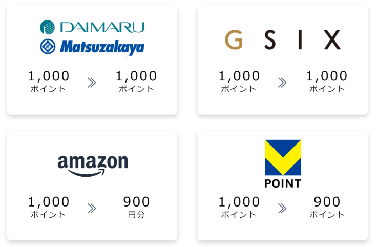 そして次点としては、Tポイント、amazonギフト券であれば90%レートで交換もできるようになっていますよ!
