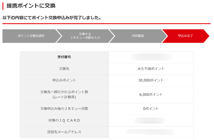 今は「JRキューポ」から「永久不滅ポイント」へのポイント移行までは済ませているという形ですね!