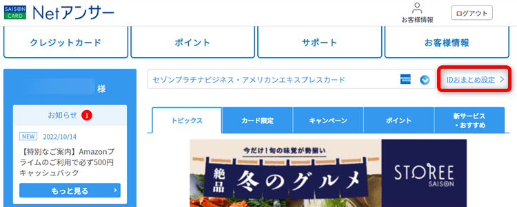 次に、複数のセゾン系のカードをお持ちの場合、「Netアンサー」にログインしてそちらでも管理ができます。