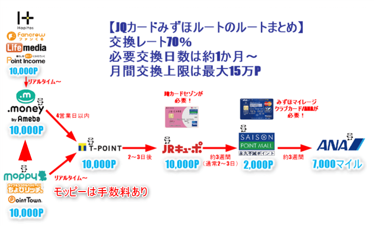 JQみずほルートのANAマイル70%交換方法!ルート、必要カード、必要日数のまとめ!!