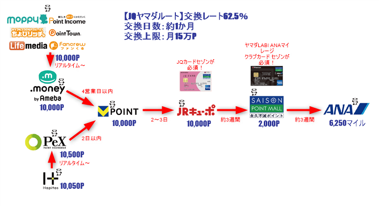 JQヤマダルートのANAマイル62.5%交換方法!ルート、必要カード、必要日数のまとめ!!