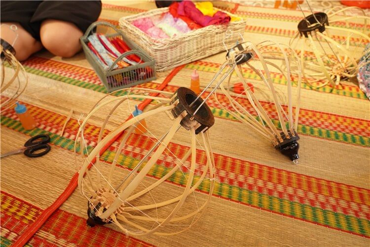 骨組みされているランタンにノリを塗り、生地を貼っていくという流れになっています。