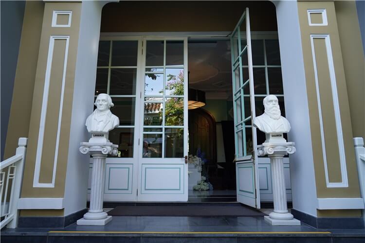 空想上の大学が設定となっており、細かいところまで大学のニュアンスが息づいている非常に楽しくも美しいホテルなのでリピートされる方も多いホテルとなっています。