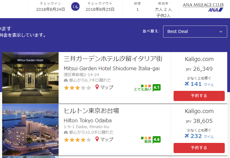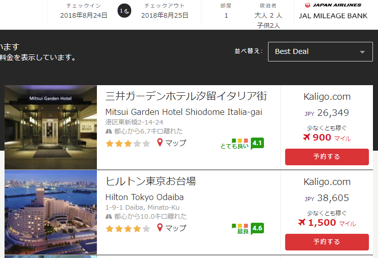 他ホテル予約サイトだとポイントが貯まるサイトなどもありますが、直にマイルが貯まるのはマイラーにとって非常にメリットがありますね!!