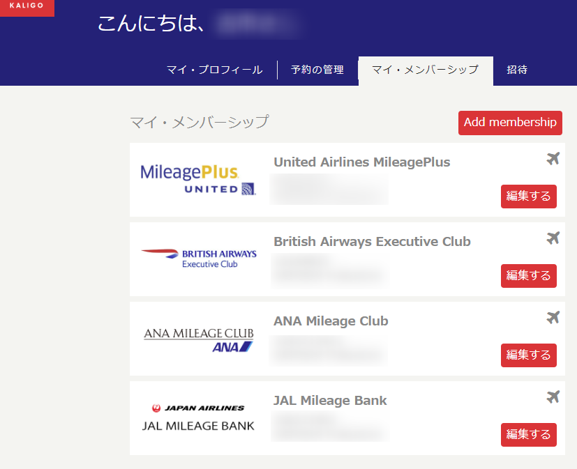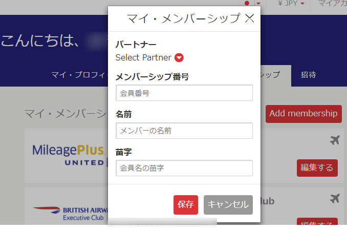 - マイ・メンバーシップ(航空会社プログラムの紐づけ)