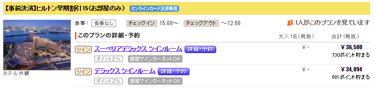 ヒルトン宿泊の場合