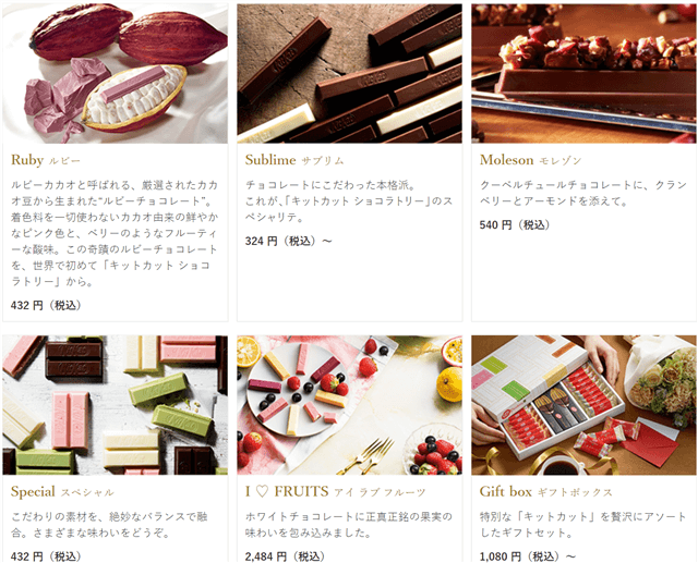 キットカット ショコラトリーの商品ラインナップについて