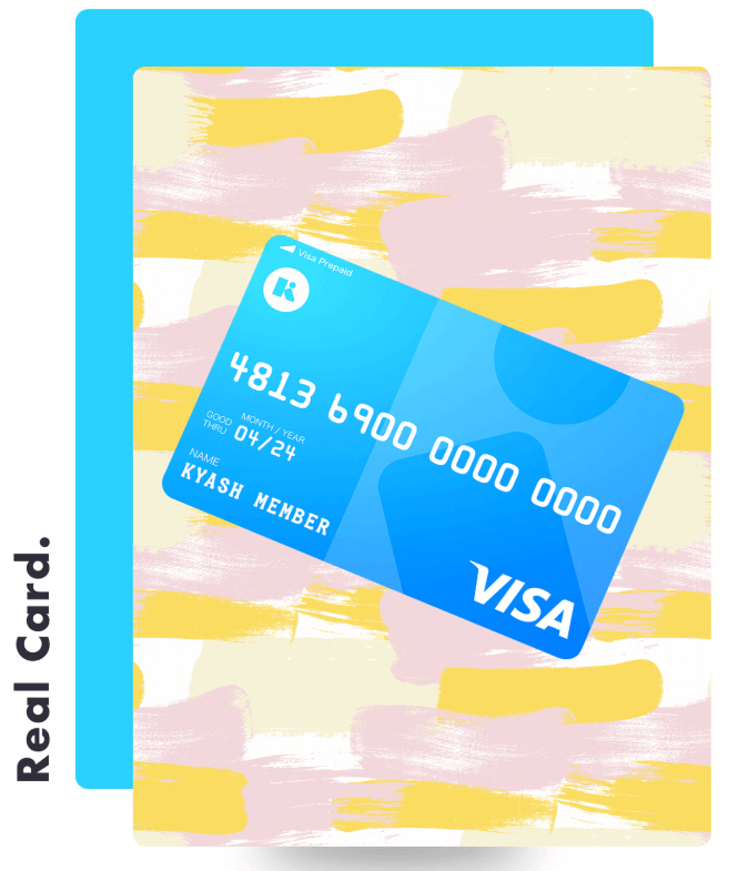 Kyash(キャッシュ)とは誰でもすぐに発行できるプリペイド式のVisaカードで、全国のVisa加盟店で利用できます。