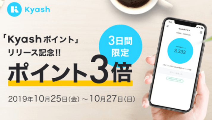 10/25(金)から3日間限定「Kyashポイント」リリース記念!ポイント3倍キャンペーン!!
