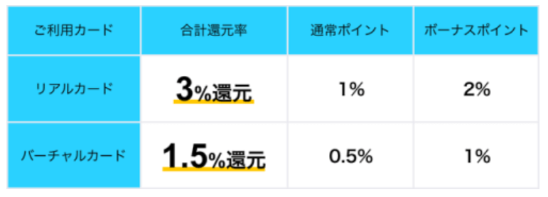 - バーチャルカード:ボーナス1%+通常ポイント0.5%=1.5%