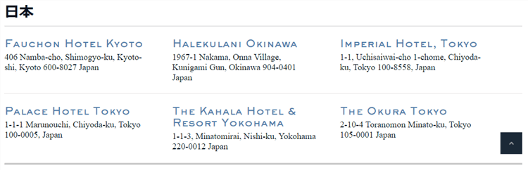 都内が圧倒的に多いですが、どのホテルも超一流の素晴らしいホテルばかりですね!
