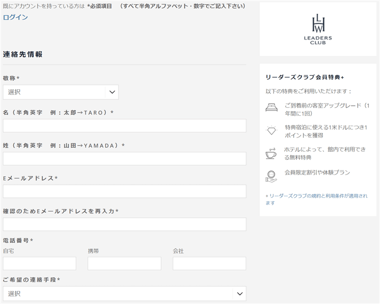 リーダーズクラブではホテルの公式サイトからの直接予約ではなく、必ずリーダーズクラブアカウントにログインをして予約をしていくというのが前提となっています。