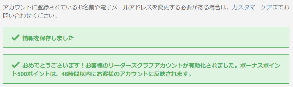 追加でプロフィール詳細の設定を完了させると上記のようにボーナスポイントが48時間以内に反映されますよ!!