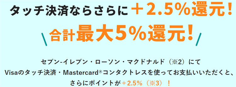 そして更にその対象店舗でタッチ決済をすれば+2.5%還元!!