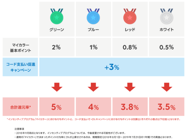 マイカラーによって還元率が変わってくるサービスなのですが、こちらが+3%アップとなります。