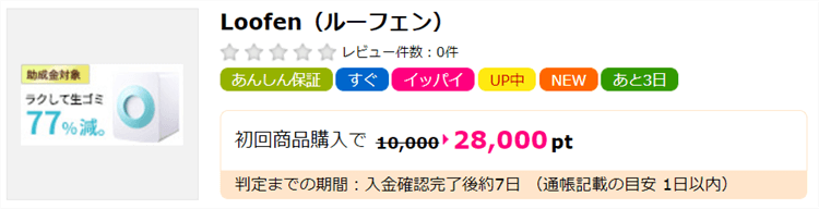 生ゴミ乾燥機loofen(ルーフェン)はどこから購入するのが一番お得かというと、ズバリ「ポイントサイト」を経由して購入するのが一番お得となっています!!