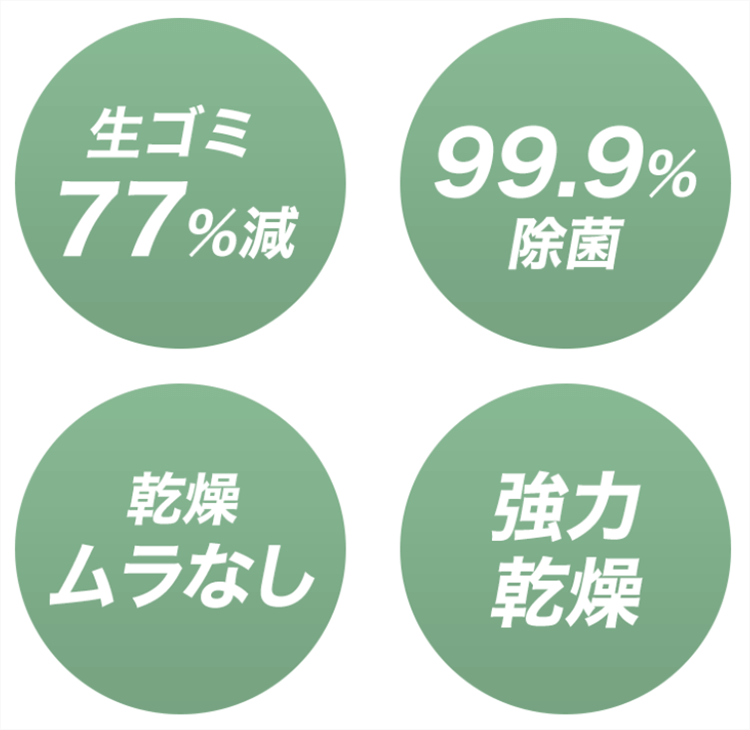 除菌もちゃんとしているのと、強力な乾燥力で乾燥ムラも無し!!