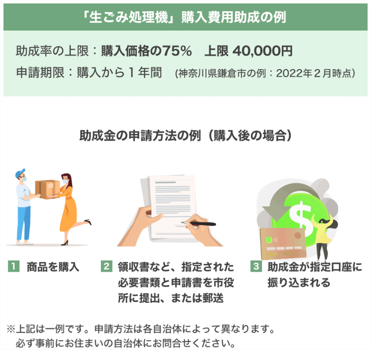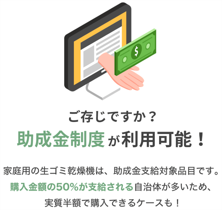 各自治体による生ごみ処理機購入助成金制度で更にキャッシュバック!!