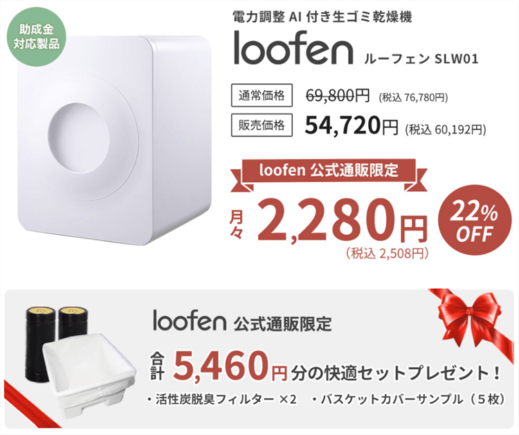 そんな大ヒット商品loofen(ルーフェン)ですが今なら60,192円(税込)で購入ができます。