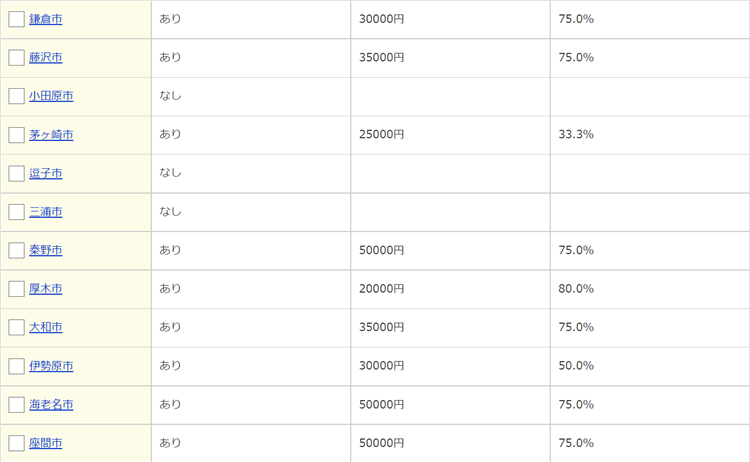 海老名市や座間市のケースだと上限が50,000円(助成率3/4)となっているので、45,000円がキャッシュバック!!