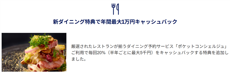 | ダイニング特典 | × | ポケットコンシェルジュ20%キャッシュバック |