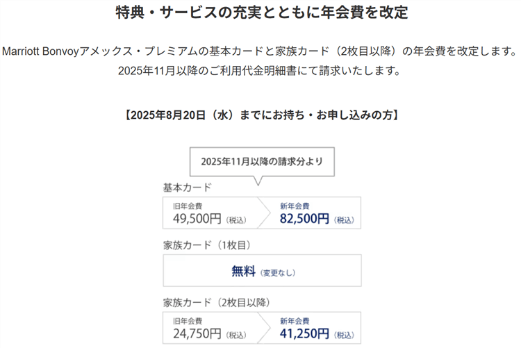 正直これまでのマリオットユーザーはマリオットアメックスプレミアムを利用している方が圧倒的多数だったんですが、ここまでの年会費アップとなるとかなりの人が解約もしくはダウンうグレードをしていくのではないか?と思ってしまいます。。。