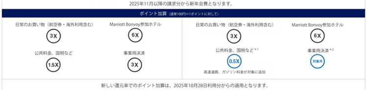 マリオットアメックスでの公共料金、国税などは0.5%還元へ!更に事業用決済においてはポイント付与対象外!