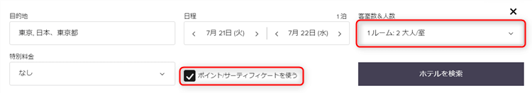 更にホテルによってはルーム内容によって必要ポイントが異なることがあります。