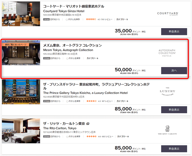 つまり年会費よりも宿泊費が高い高カテゴリーなホテルをメインに探すのが一番お得です。