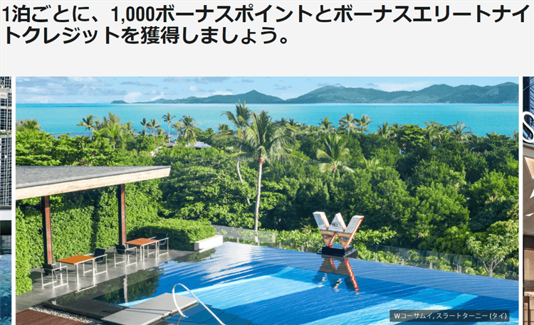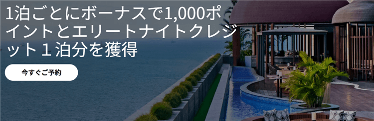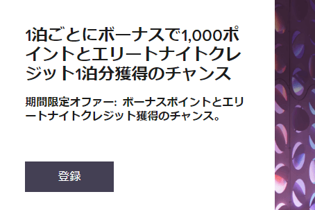 - 1泊ごとにボーナスで1,000ポイントとエリートナイトクレジット1泊分を獲得【終了】
