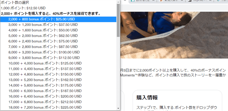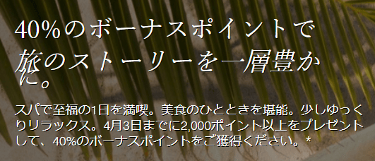 マリオットポイントセールですが今回は40%ボーナスとなります。