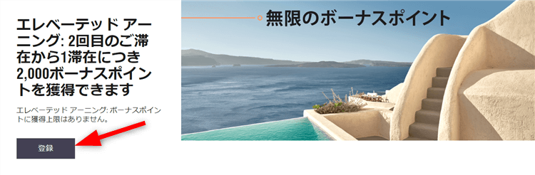 2回目の滞在から、1滞在につき2,000ボーナスポイント