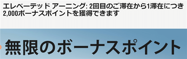 - 2回目の滞在から1滞在につき2,000ボーナスポイント