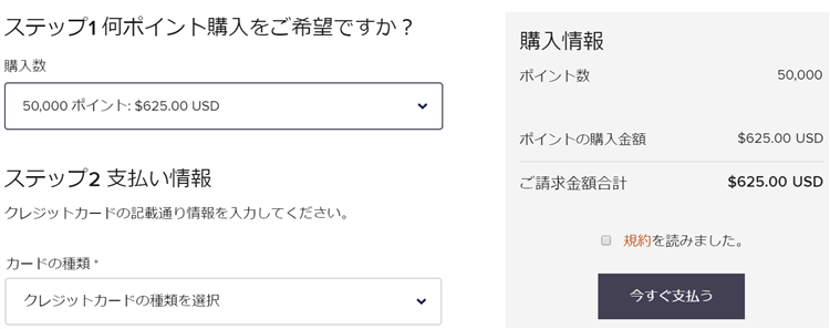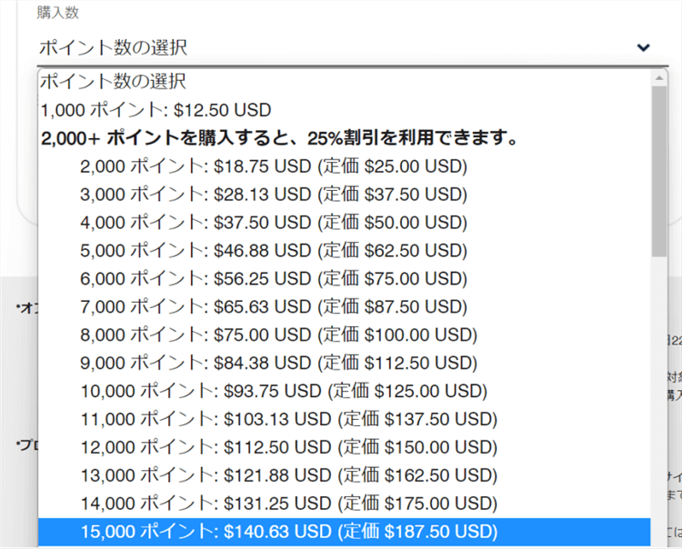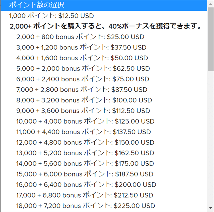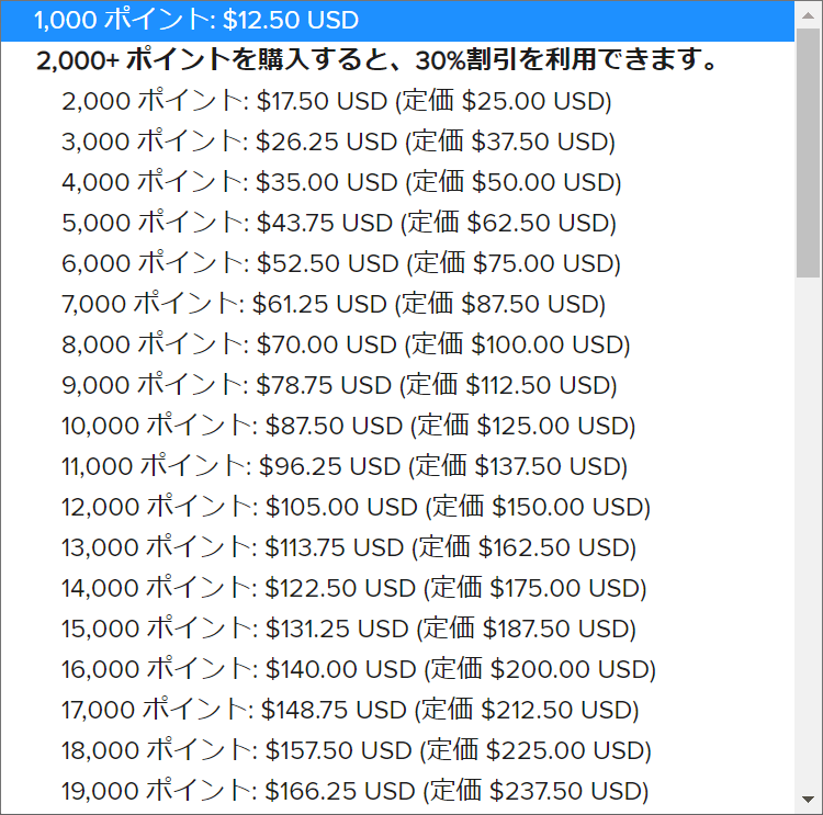 価格は1,000ポイントあたり12.50米ドルとなります。