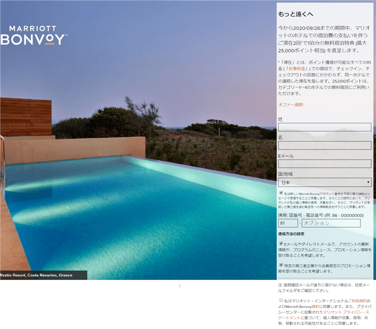 マリオットのQ4グローバルキャンペーンのエントリーがいよいよスタートしました。