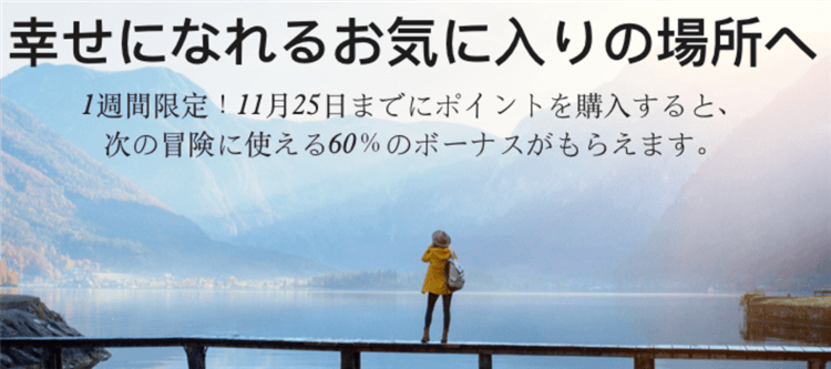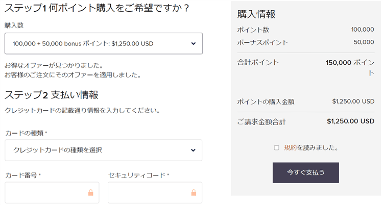 - 2,000ポイント以上のポイント購入で50%ボーナス