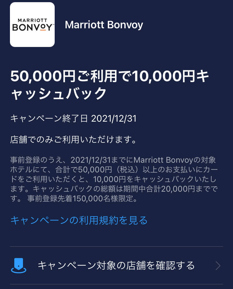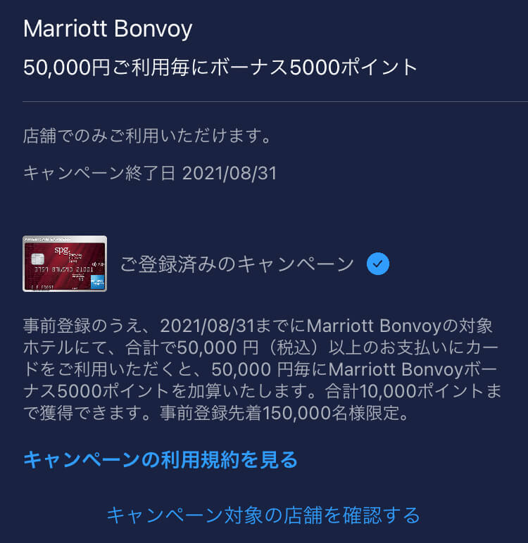 こちらマリオットアメックスを持っている方が対象のキャンペーンとなります。
