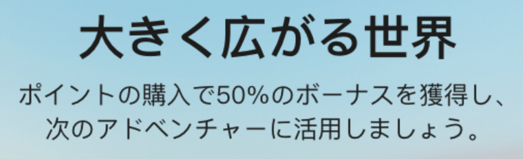 - 2,000ポイント以上のポイント購入で50%ボーナス