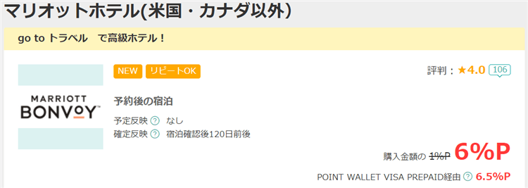 それと忘れがちですが、マリオットボンヴォイプログラムに参加しているホテルを予約する際には必ずポイントサイトを経由することを忘れないようにしてください。