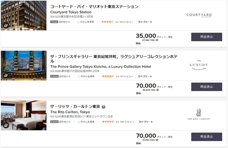 この3つのホテルの場合だと、ダントツでザ・リッツ・カールトン東京がお得ですね!