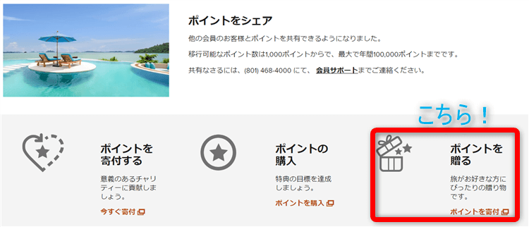 先ほどはご自身が所有しているマリオットポイントを家族や友人にプレゼント(譲渡)する方法を紹介しました。